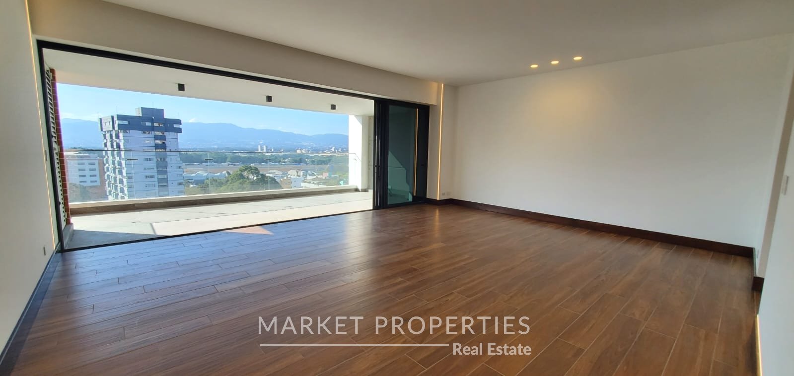 Sala, comedor con una amplia terraza con hermosas vistas hacia la ciudad